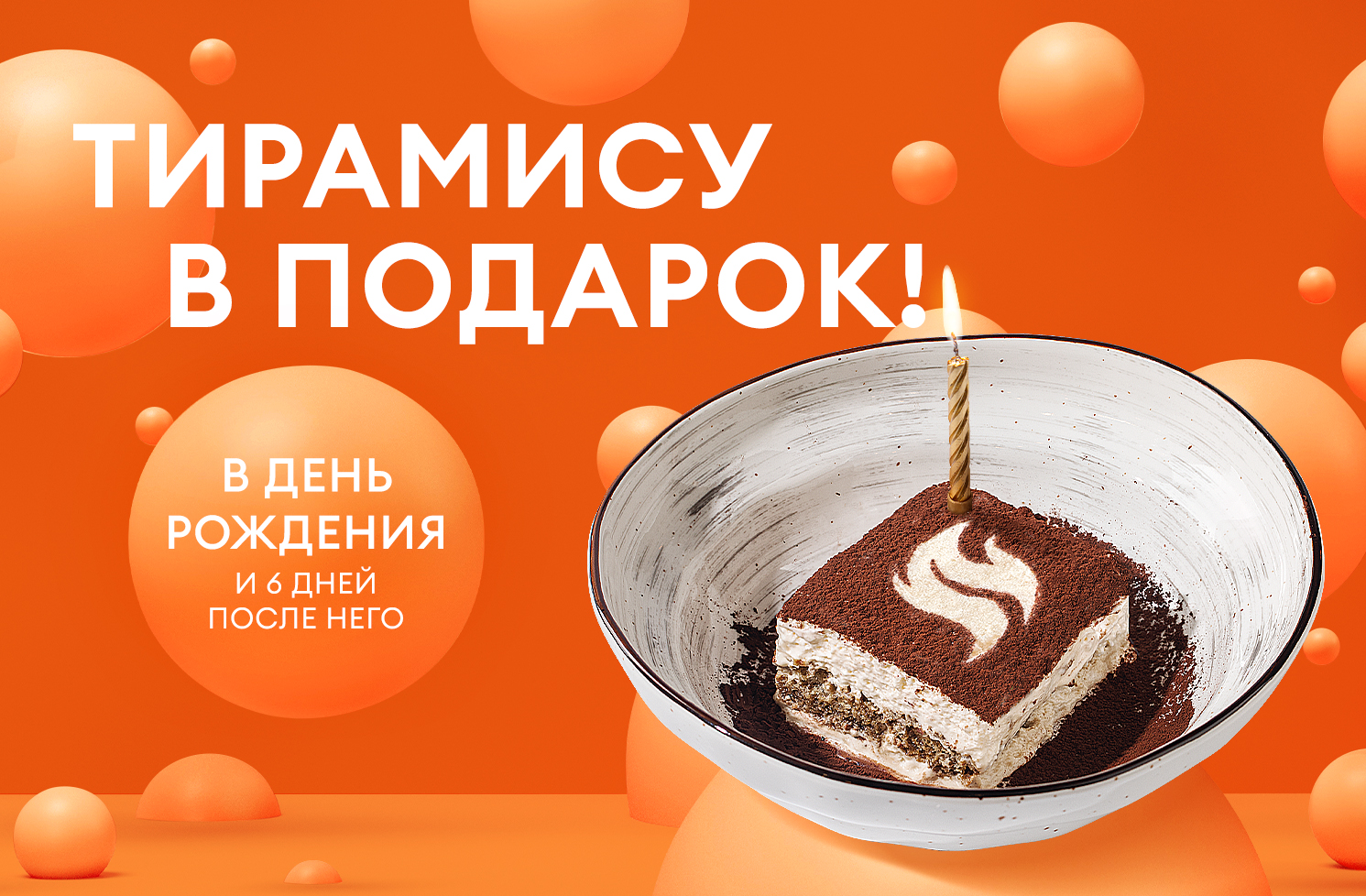Приводите своих близких в iL Патио, чтобы большой семьей отметить праздник. Мы с радостью накроем стол, окружим всех вниманием – для нас это тоже важное событие. Празднуйте в атмосфере домашнего уюта, а мы подарим фирменный десерт «тирамису» в сам день рождения и 6 дней после него! Только не забудьте взять с собой паспорт.